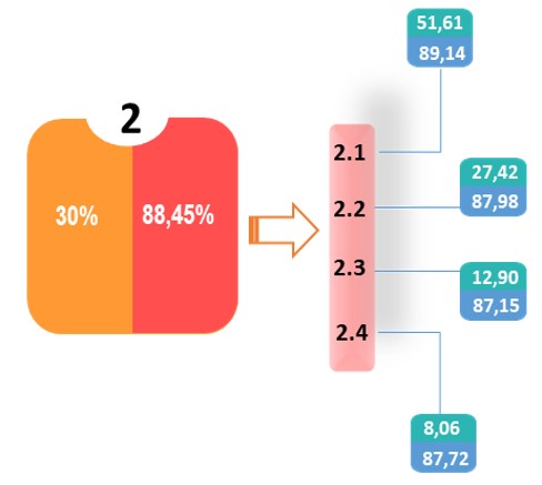 desde el desempeño de la dimensión Proyecto Académico, el programa de Ingeniería de Sistema obtuvo una valoración con una calificación cuantitativa de 88.45, de tal