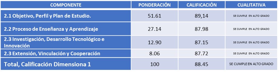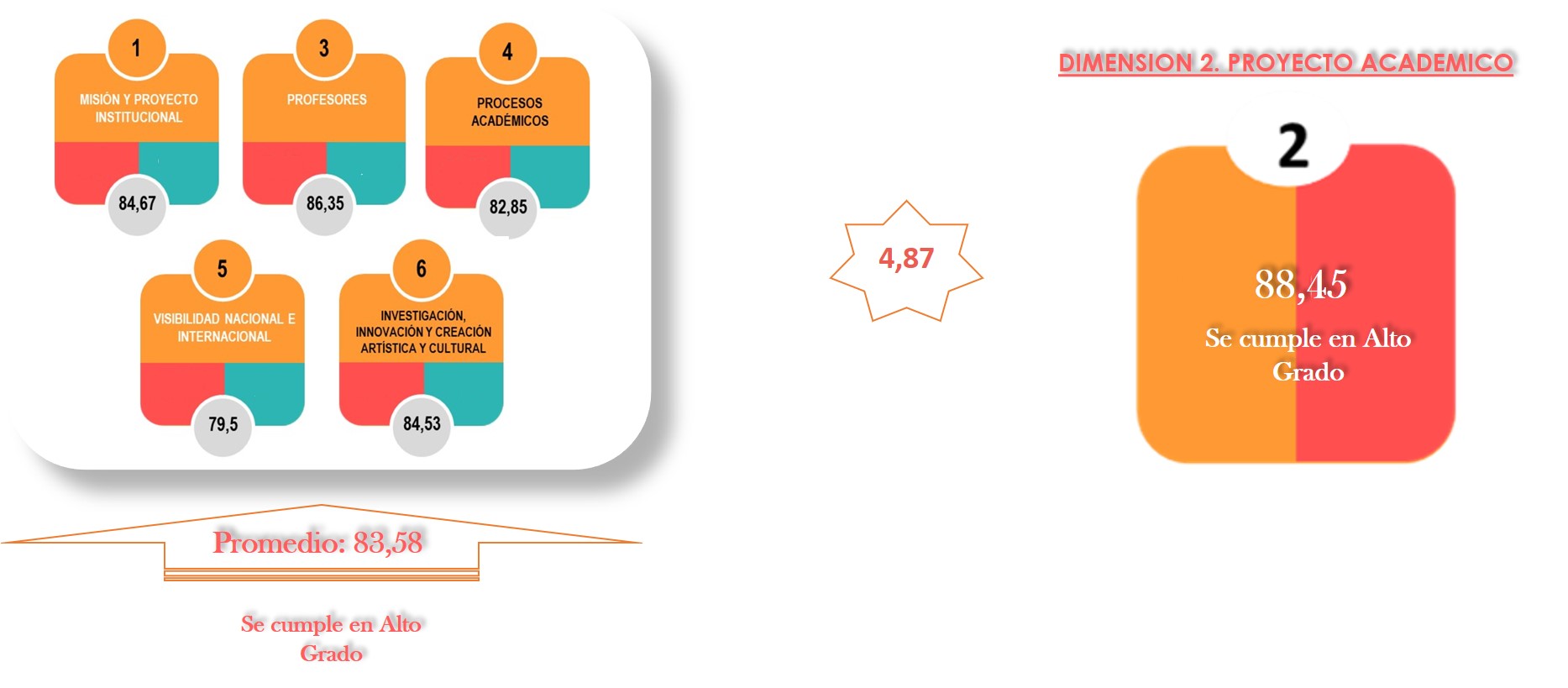 desde el desempeño de la dimensión Proyecto Académico, el programa de Ingeniería de Sistema obtuvo una valoración con una calificación cuantitativa de 88.45, de tal