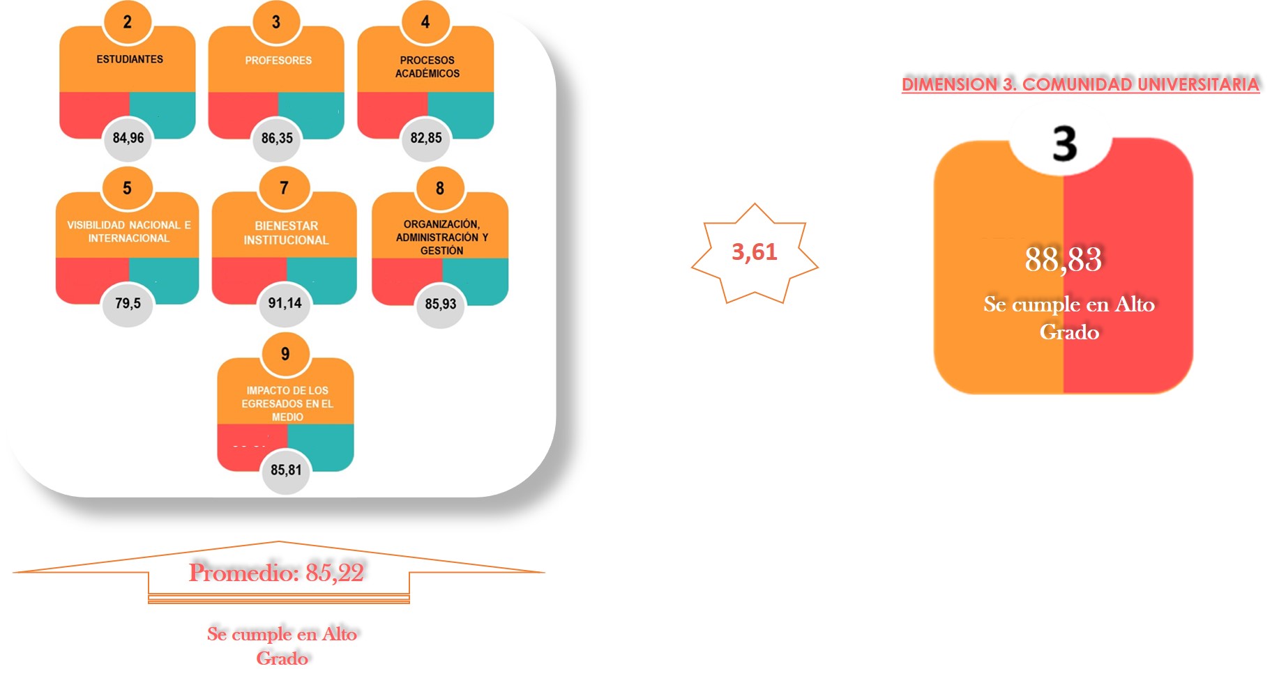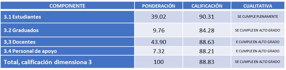 Bajo esta perspectiva general, se puede concluir que, desde el desempeño de la dimensión Comunidad Universitaria,